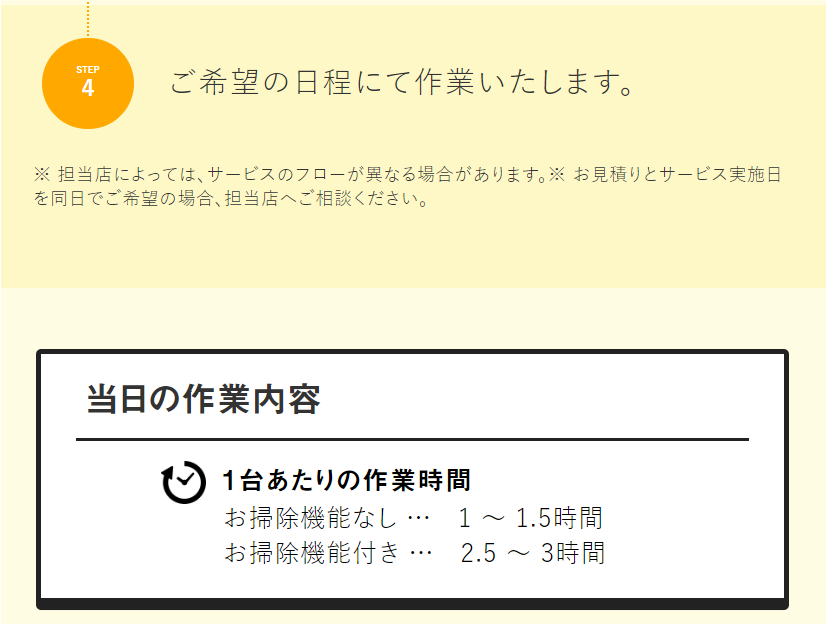 ※サービスカーの駐車スペースのご用意をお願いします。駐車できない場合は有料駐車場を利用するため、駐車料金をご負担いただきます。