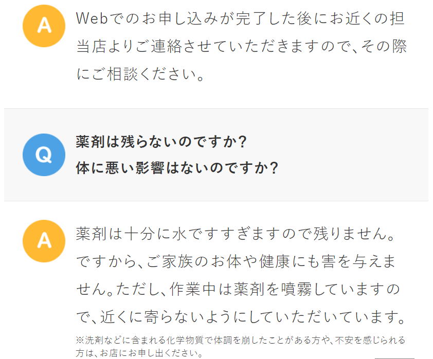 ※洗剤などに含まれる化学物質で体調を崩したことがある方や、不安を感じられる方は、お店にお申し出ください。