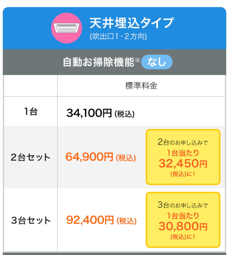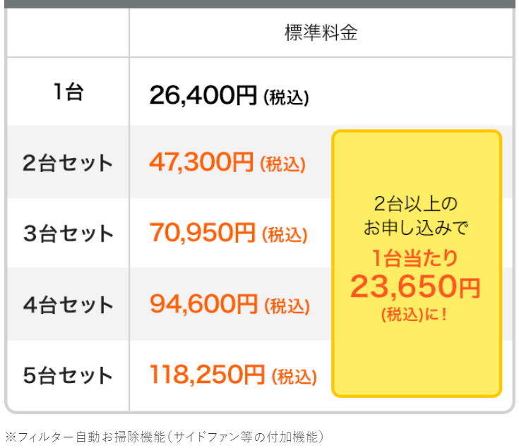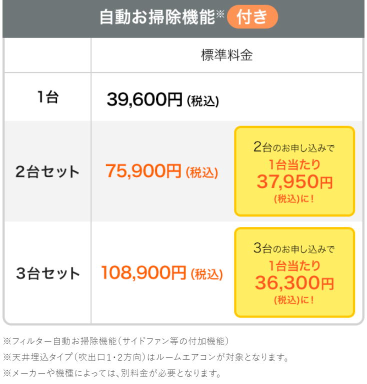 ※その他の機種・室外機につきましては、別途お見積りさせていただきます。